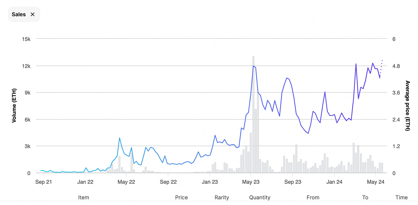🍎 Milady to the moon: Peaking again at close to all time high ETH 5.8 , while most other collections like Azuki and Mutant Ape Yacht Club declined. This surge, mirrored by the Milady-adjacent Redacted Remilio Babies NFTs, which also rose 35%, occurred despite the typical preference for holding ETH during high volatility. Despite past controversies, Milady and Remilio NFTs have consistently outperformed other Ethereum NFTs since 2022 and are currently at all-time highs, highlighting their resilience and investor interest.